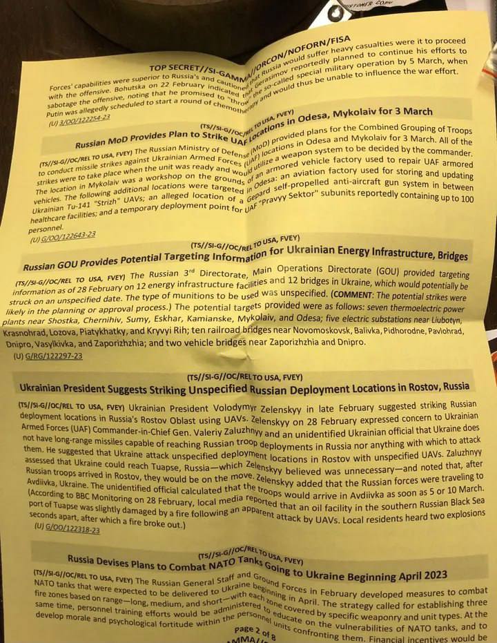 Нагадаємо, що Пентагон обмежує доступ до опублікованих матеріалів після витоку. Дані із цього зливу зараз активно поширюють у ЗМІ.