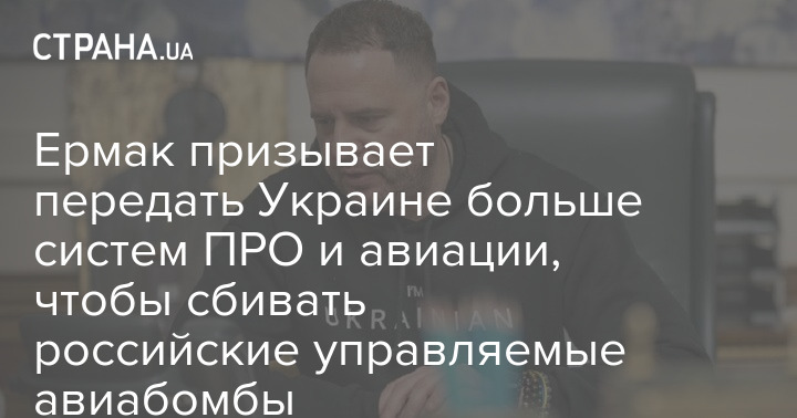 Єрмак закликає передати Україні більше систем ПРО та авіації, щоб збивати російські керовані авіабомби