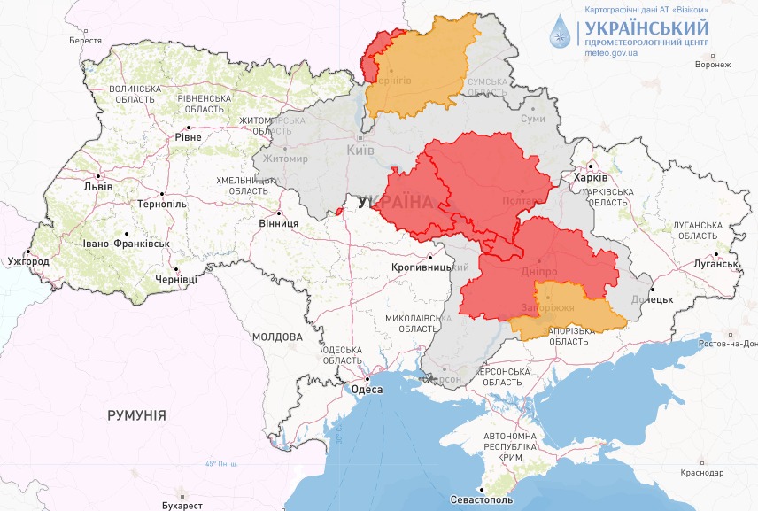 Укргідрометцентр попередив про зростання рівня води в річках низки регіонів. У Черкаській, Полтавській, Кіровоградській, Дніпропетровській оголошено червоний рівень небезпеки. У Запорізькій, а також Чернігівській – помаранчевий.