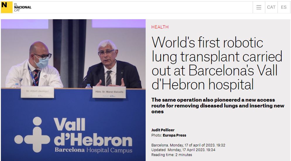 Крім того, що у Vall d'Hebron була проведена перша у світі повністю роботизована трансплантація легень, під час неї було створено новий метод доступу для видалення ураженої легені. Цей метод є набагато менш інвазивним, ніж той, який використовували досі.