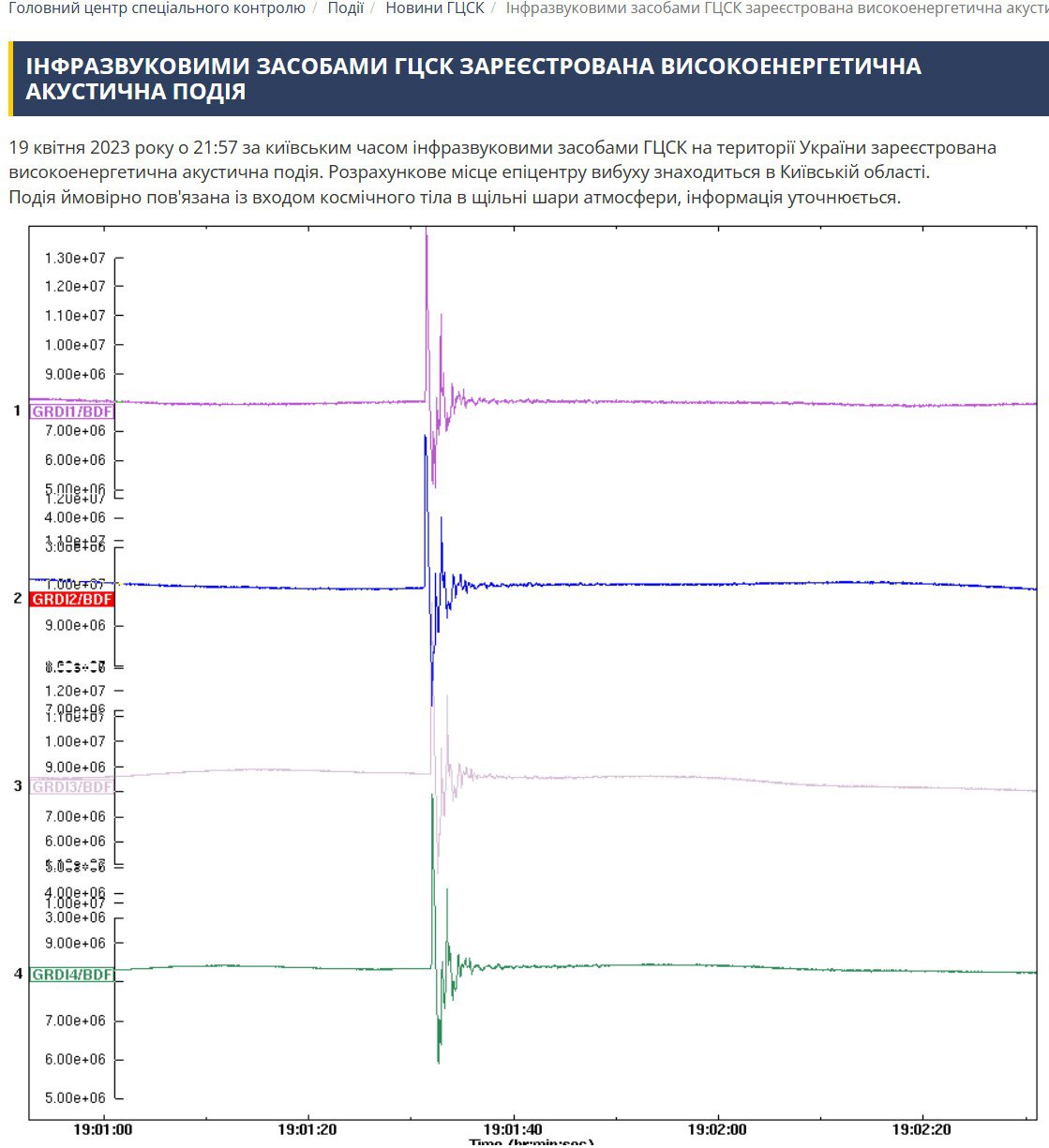 В Україні вчора ввечері, о 21:57, сталася "високоенергетична акустична подія". Воно можливо пов'язане з входом космічного тіла в щільні шари атмосфери.