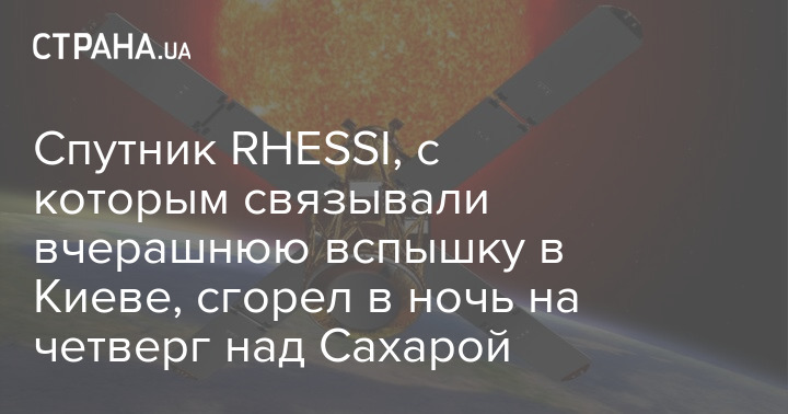 Американський космічний апарат Reuven Ramaty High Energy Spectroscopic Imager (RHESSI) 19 квітня зійшов з навколоземної орбіти і згорів в атмосфері Землі.