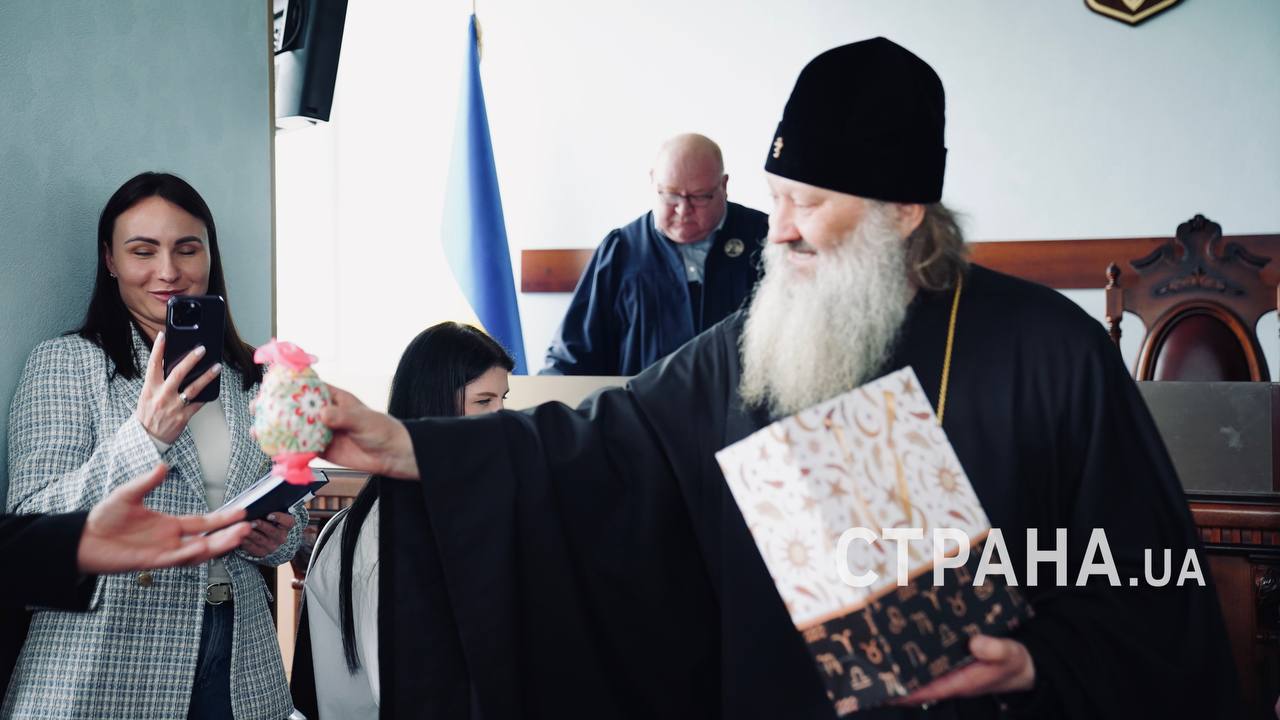 Після оголошення рішення суду митрополит Павло подарував суддям та прокурору великодні яйця.