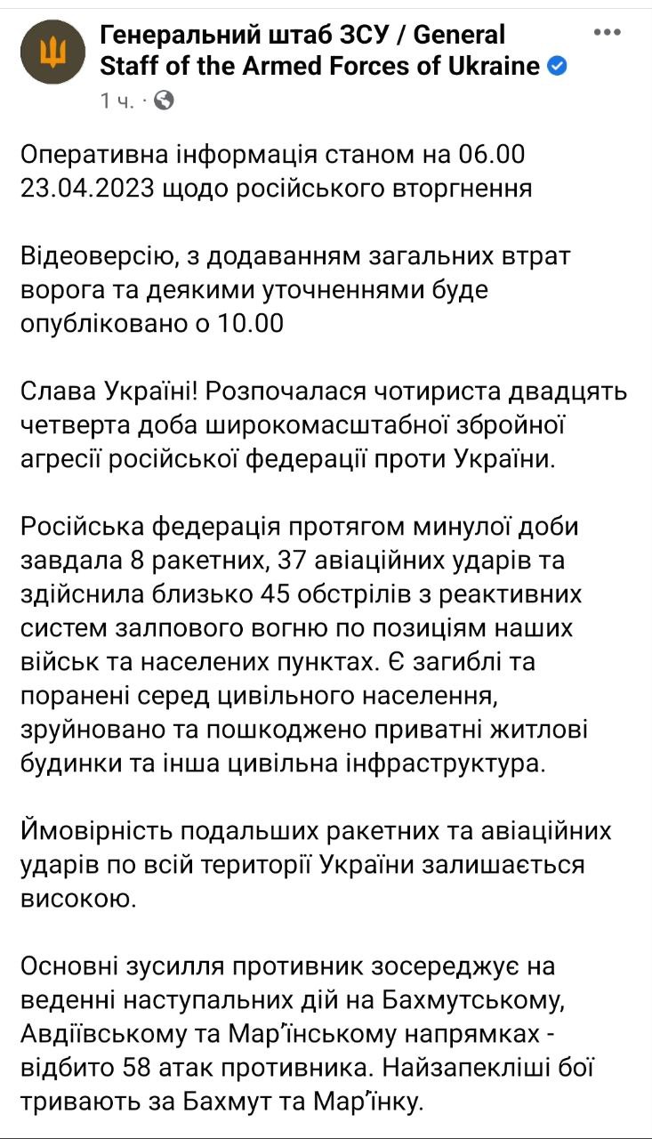 Докладніше про те, що відбувалося вчора – читайте у підсумках за 22 квітня.