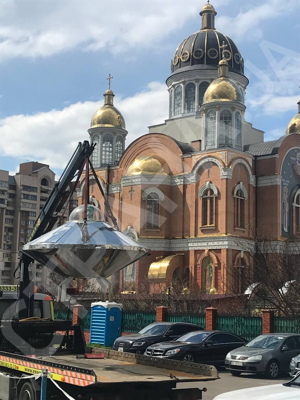 12:33 Літаюча тарілка, яка стала зіркою у київських телеграм-каналах у ніч дивного спалаху над столицею, зараз перебуває на Оболонській набережній у Києві поряд із парком "Наталка". Там вона висить, прикріплена до стріли евакуатора.