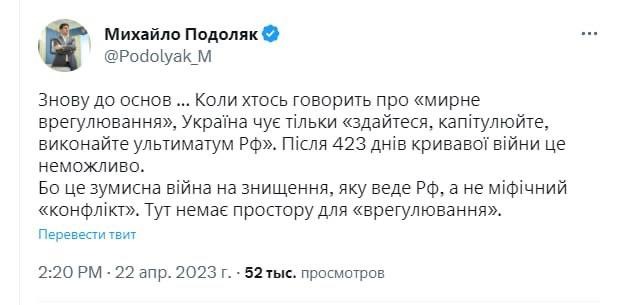 З критикою мирних ініціатив виступив радник голови офісу президента України Михайло Подоляк.