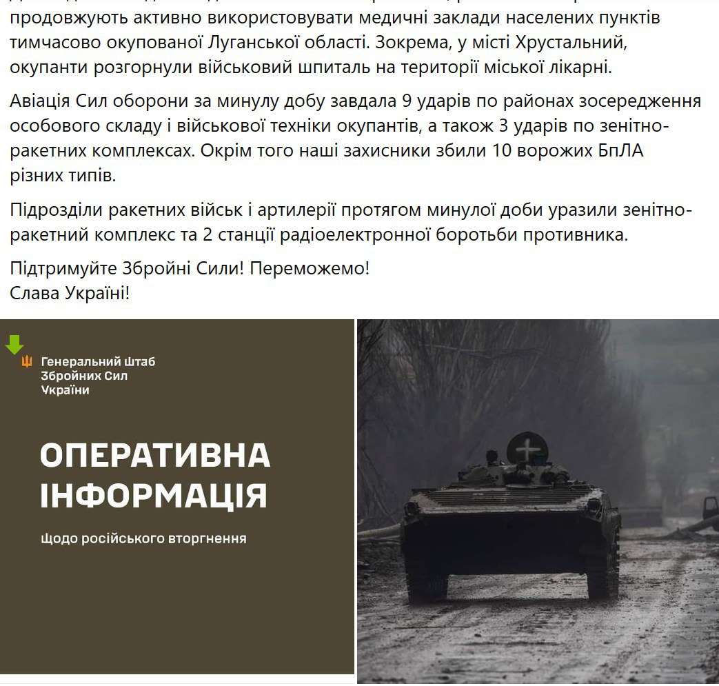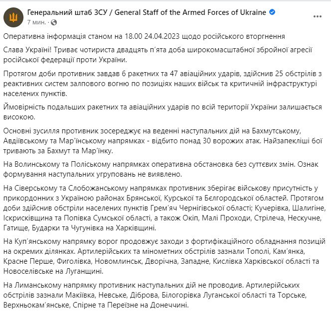 07.47 Зведення українського Генштабу на ранок 25 квітня.