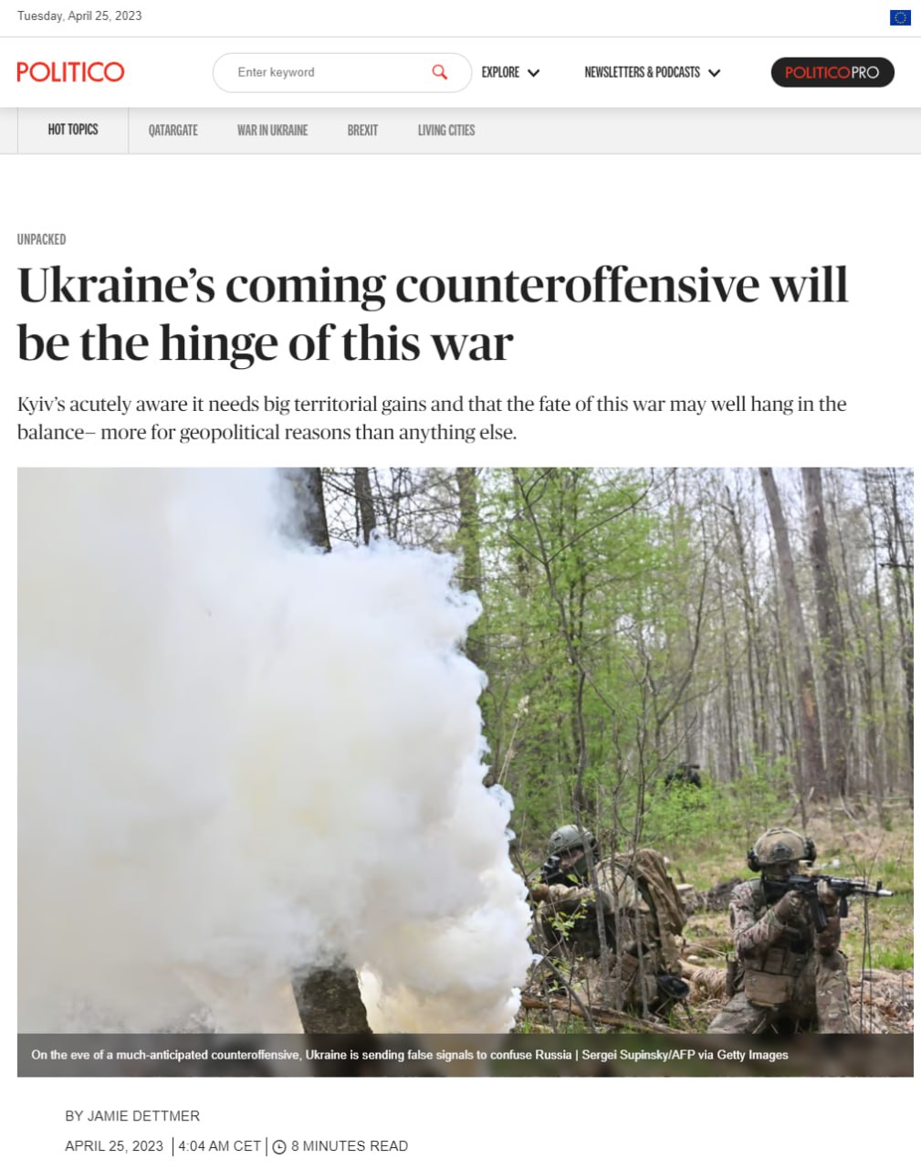 У Києві при цьому "гостро усвідомлюють, що їм потрібні великі територіальні придбання, і що доля цієї війни цілком може залежати від цього контрнаступу - більше з геополітичних причин, ніж з інших причин".