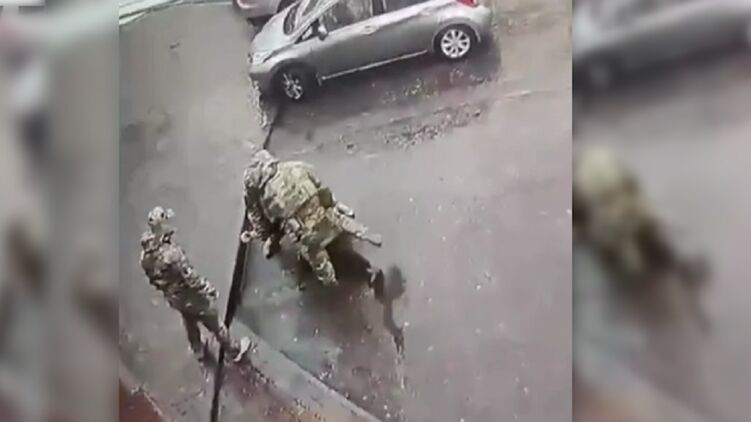 Троє військових б'ють чоловіка у Черкасах. Скріншот відео