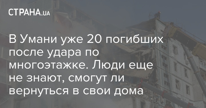 В Умані вже 20 загиблих після удару по багатоповерхівці. Люди ще не знають, чи зможуть повернутися до своїх домівок