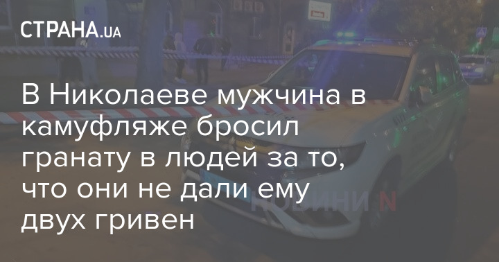 У Миколаєві чоловік у камуфляжі кинув гранату у людей за те, що вони не дали йому грошей