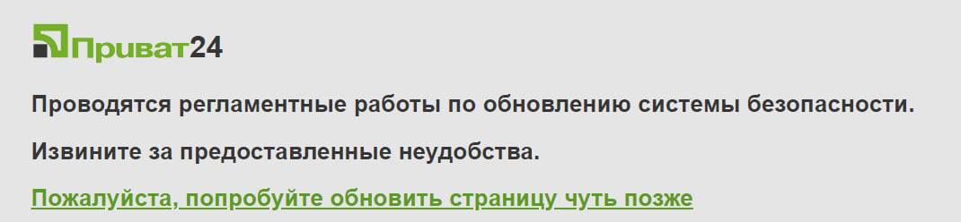 На сайті "Привату" це пояснюють регламентними роботами щодо оновлення системи безпеки.