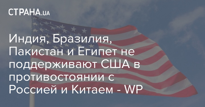 Ряд впливових міжнародних гравців, включаючи Індію, Бразилію, Пакистан та Єгипет, не підтримують США у їхньому протистоянні Росії та Китаю.