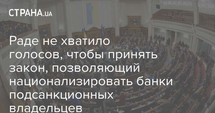 Раді не вистачило голосів, щоб ухвалити закон, що дозволяє націоналізувати банки підсанкціонованих власників