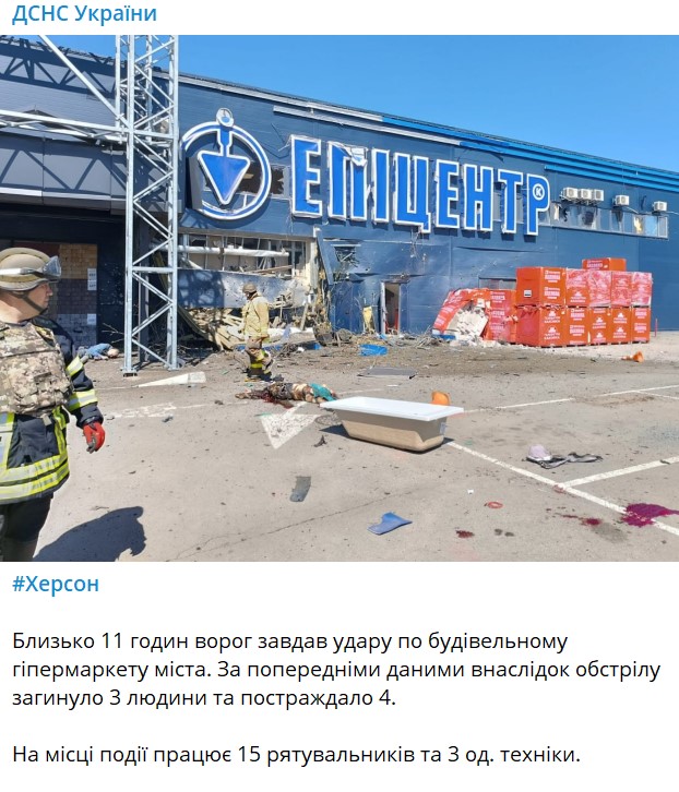 Вдень у середу, 3 травня, росіяни завдали удару по будівельному гіпермаркету "Епіцентр" у Херсоні.