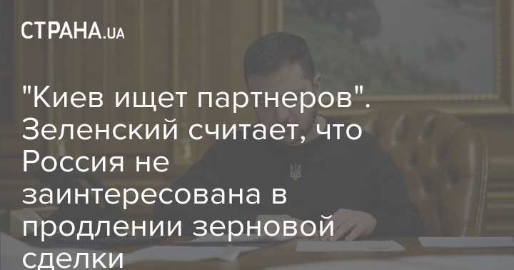 Президент України Володимир Зеленський вважає, що Росія, схоже, не зацікавлена у продовженні угоди щодо чорноморського зерна, але Київ зосередився на пошуку партнерів для виконання зернової угоди.