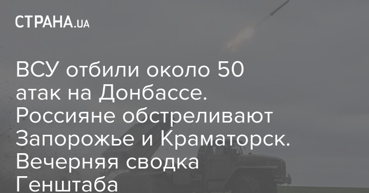 ЗСУ відбили близько 50 атак на Донбасі. Росіяни обстрілюють Запоріжжя та Краматорськ. Вечірнє зведення Генштабу