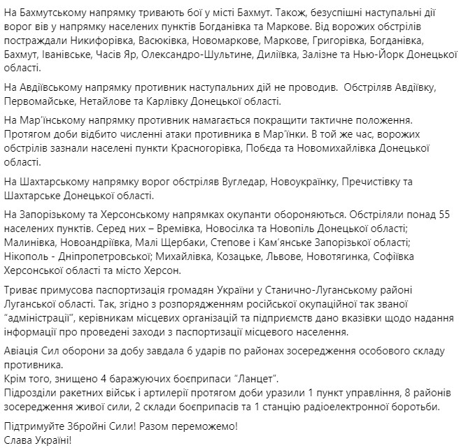 18.45 Головне у вечірньому зведенні Генштабу ЗСУ: