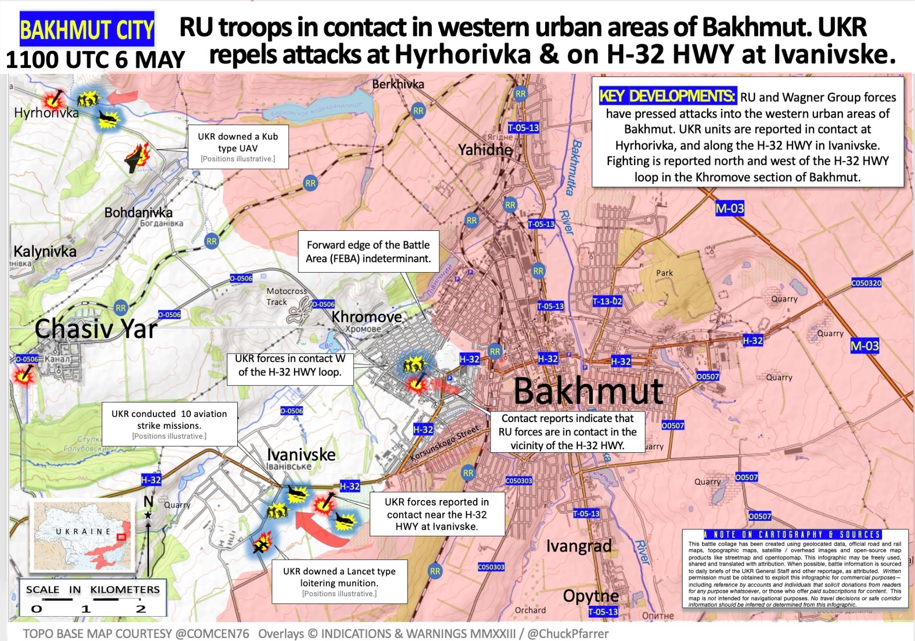 Тобто поки що непомітно, щоб російська ПВК припинила бойові дії через брак боєприпасів. Проте Євген Пригожин сьогодні ще раз підтвердив, що "Вагнер" 10 травня залишить Бахмут, а до того часу "продовжить наступальні дії".