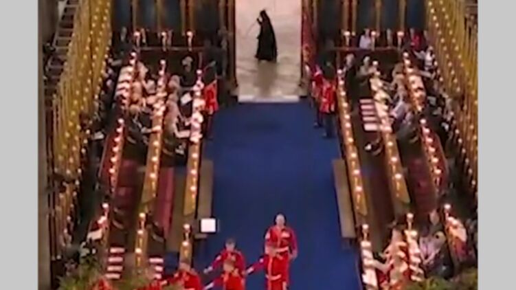На коронації британського короля Карла III помітили загадкову постать у чорному. Скріншот відео