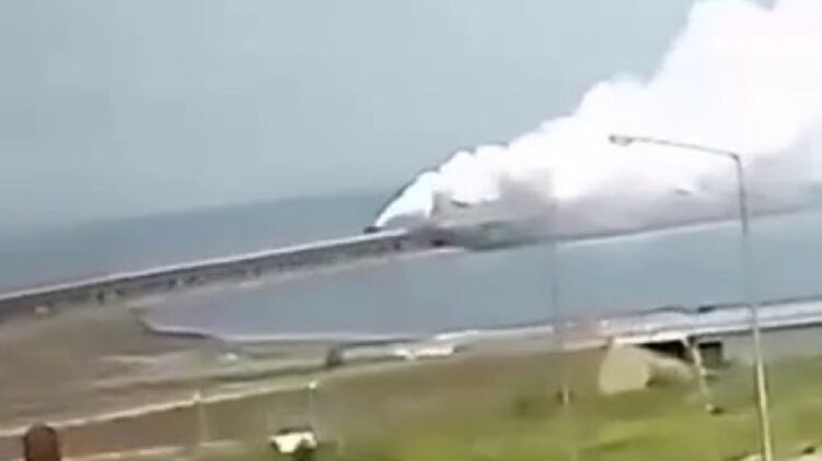 Також у мережі з'явилося відео, де видно дим на Кримському мосту.
