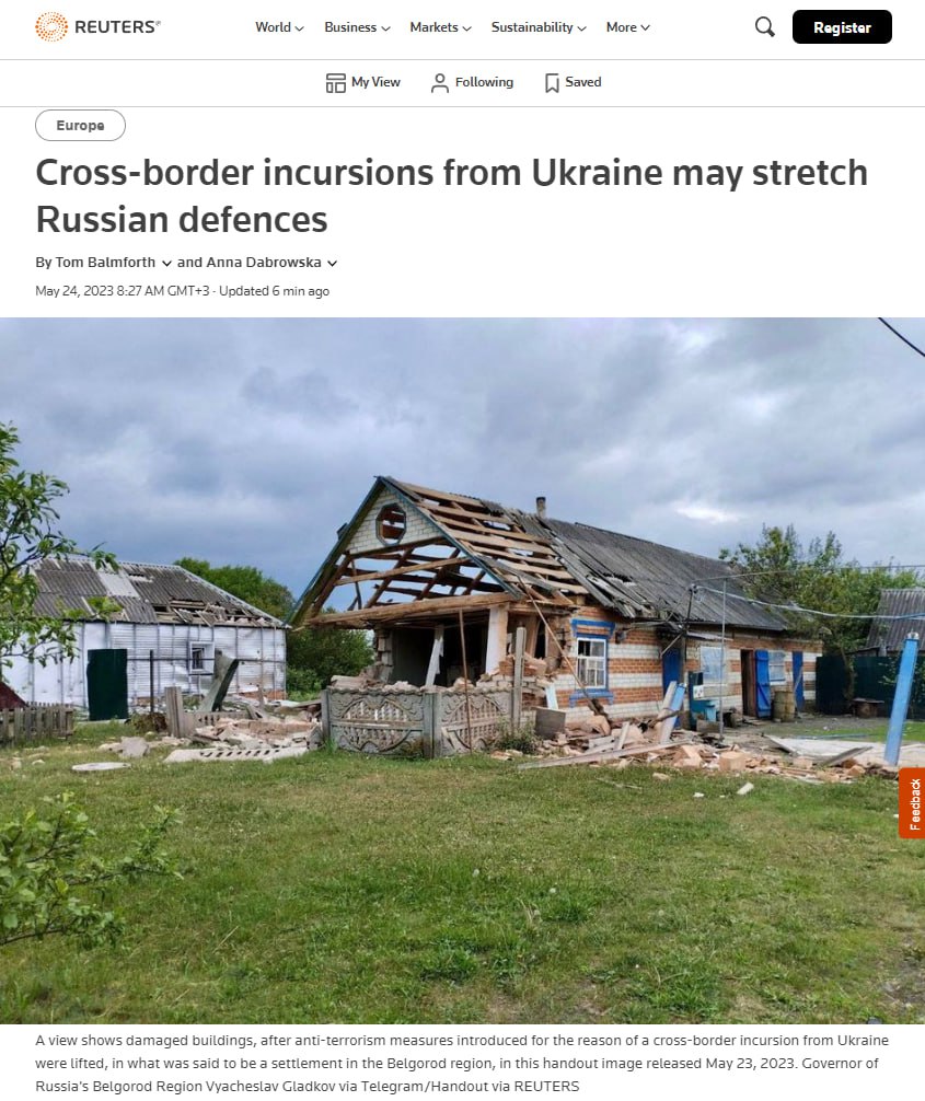 Reuters пише, що учасники рейду у Білгородській області можуть бути пов'язані з Головним управлінням розвідки Міністерства оборони України.
