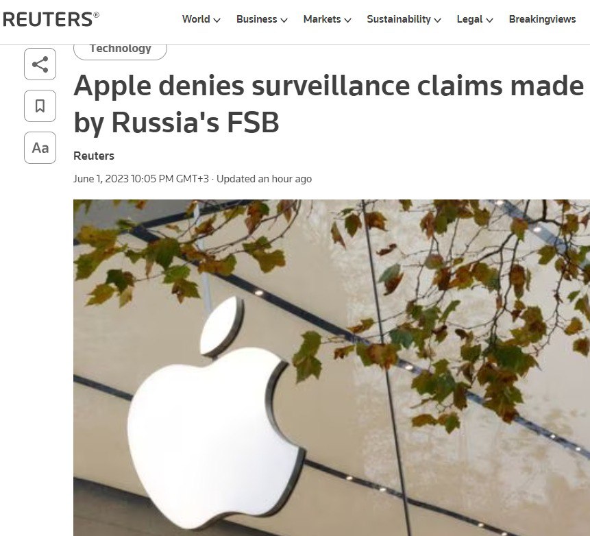 Компанія Apple заперечує роботу зі спецслужбами США для зараження смартфонів російських дипломатів, про що заявили у РФ.