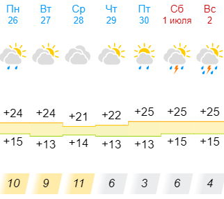 У четвер та п'ятницю +24…+25 вдень, з неба знову поллє. В останній робочий день – сильно більше 15 мм.