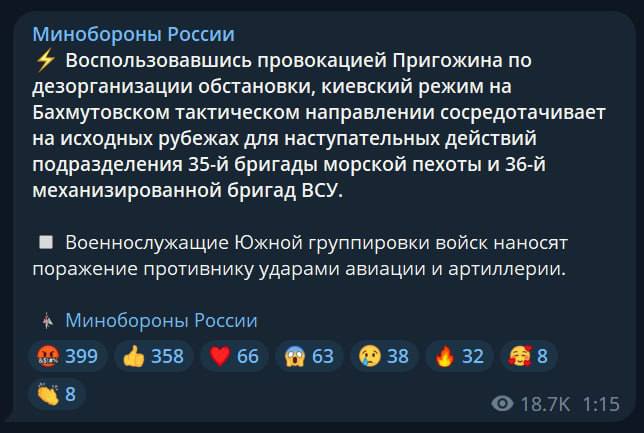 01.25 Міноборони РФ заявило, що «скориставшись провокацією Пригожина, ЗСУ на бахмутському напрямку готуються до наступу».