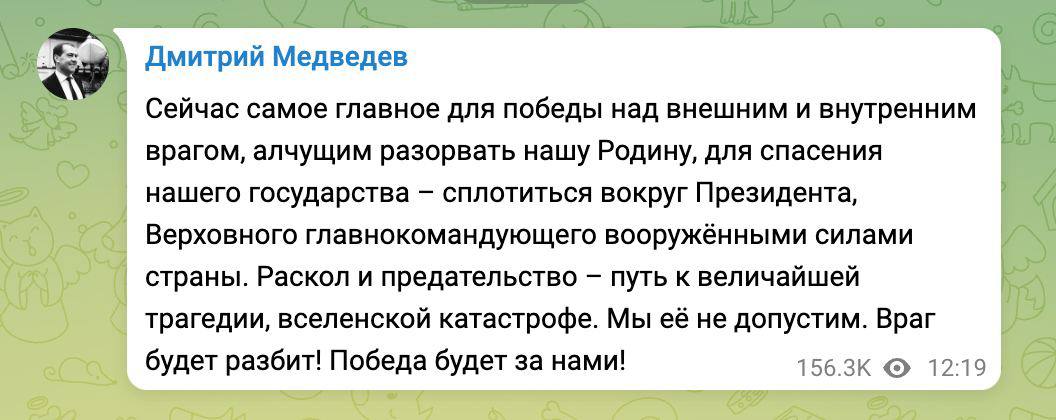 12:25 Після тривалої паузи висловився Дмитро Медведєв.