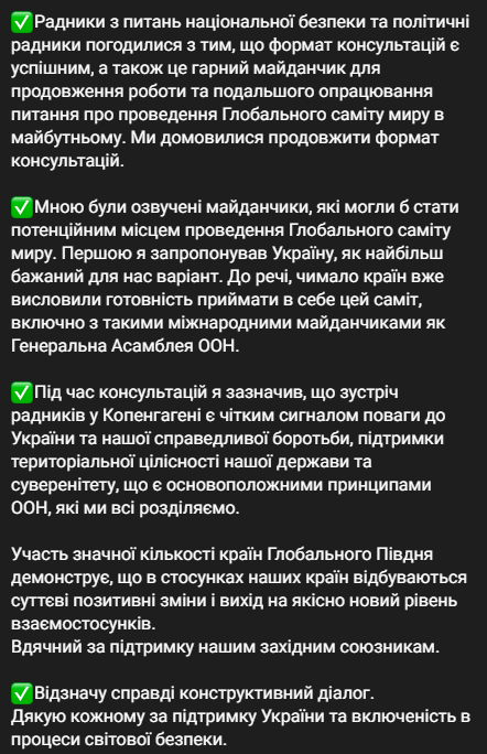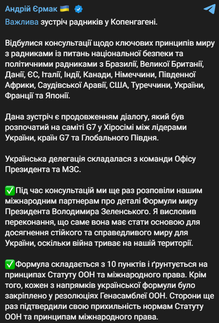 У Копенгагені Україна та низка країн обговорили "формулу світу". Фото: Телеграм