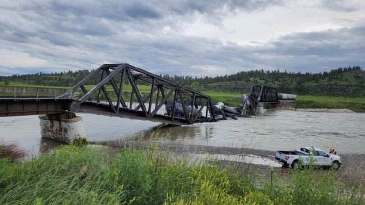 В американському штаті Монтана після обвалення мосту впали в річку кілька вагонів з отруйними речовинами