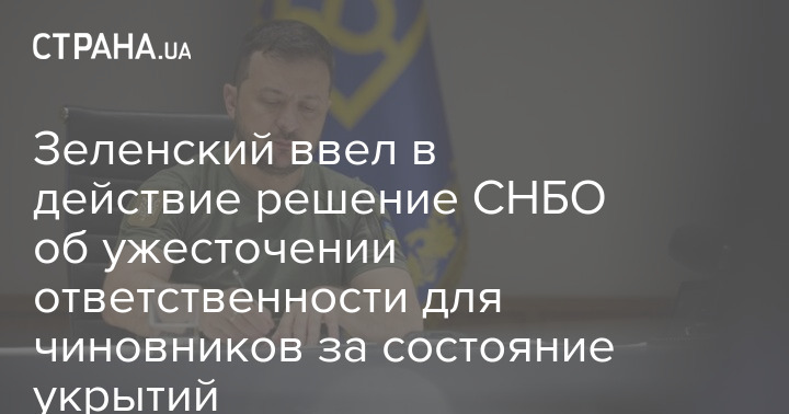 Президент України Володимир Зеленський ввів у дію рішення п'ятничного засідання РНБО, яким пропонується посилити відповідальність за неналежний стан укриттів.