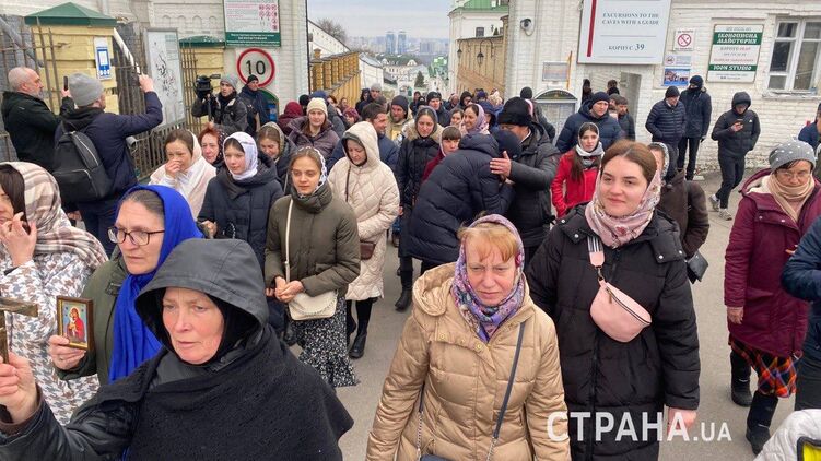 Віруючі УПЦ не пустили комісію Мінкульту на територію Лаври. Фото "Країни"