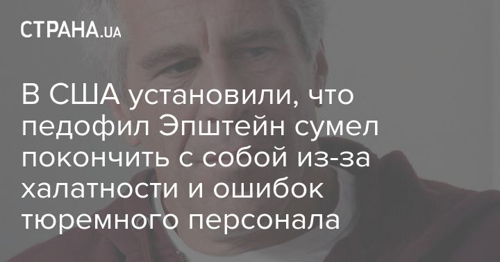 У США встановили, що педофіл Епштейн зумів накласти на себе руки через недбалість і помилки тюремного персоналу