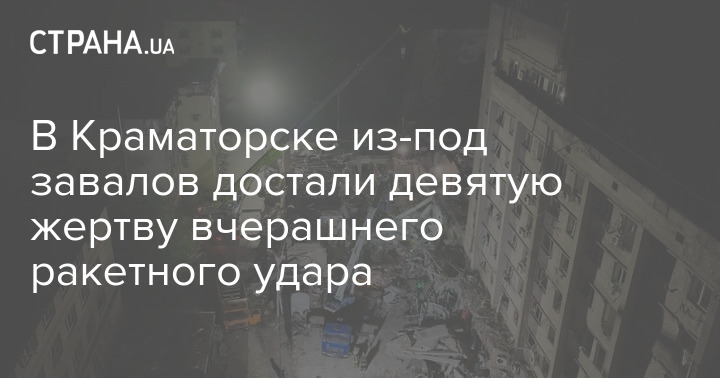 У Краматорську знайшли під завалами дев'яту жертву вчорашнього ракетного удару по піцерії у центрі міста.