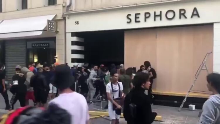 На відео можна помітити, що натовп виносить цінності із магазину косметики та парфумерії Sephora.