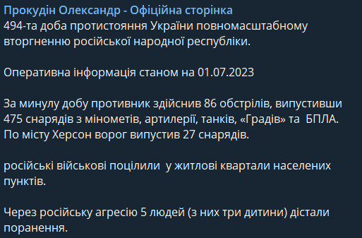 Війна в Україні триває 494-й день. Ми стежимо за новинами 2 липня 2023 року у своєму онлайні.