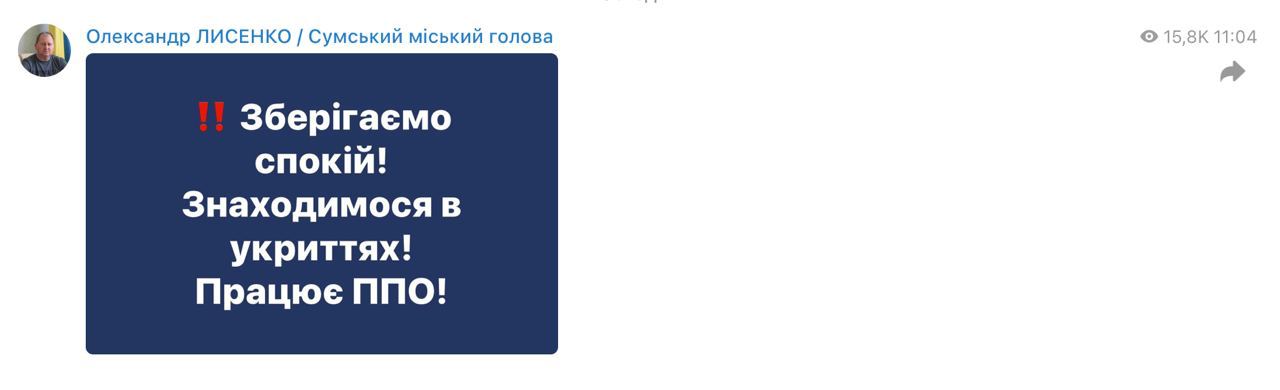 Під час повітряної атаки міський голова Олександр Лисенко писав, що працює ППО.
