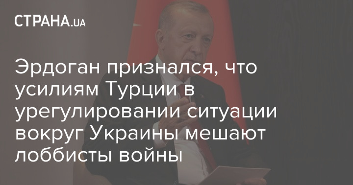 Ердоган зізнався, що зусиллям Туреччини у врегулюванні ситуації навколо України заважають лобісти війни