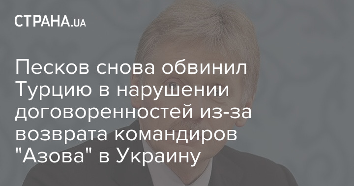 Прес-секретар президента РФ Дмитро Пєсков знову звинуватив Туреччину у порушенні домовленостей під час повернення командирів "Азова" в Україну.