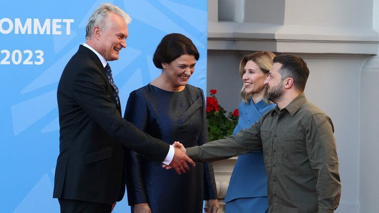 Володимира Зеленського і першу леді Олену Зеленську зустрічали президент Литви Гітанас Науседа та його дружина Діана, які прибули на захід.