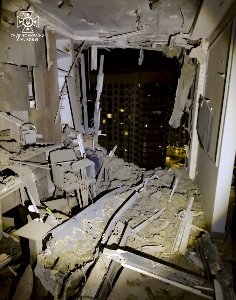Наслідки нічної атаки у Києві. Фото ДСНС
