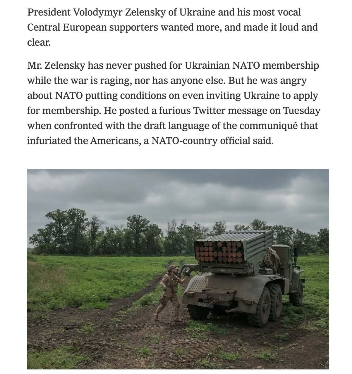 09:50 На саміті НАТО американці натякнули команді Зеленського, що якщо Україна вимагатиме надто активно і багато, то США можуть скоротити постачання військової допомоги.