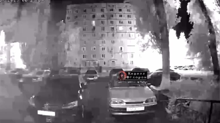 Момент падіння безпілотника у російському місті Курчатів. Скріншот відео