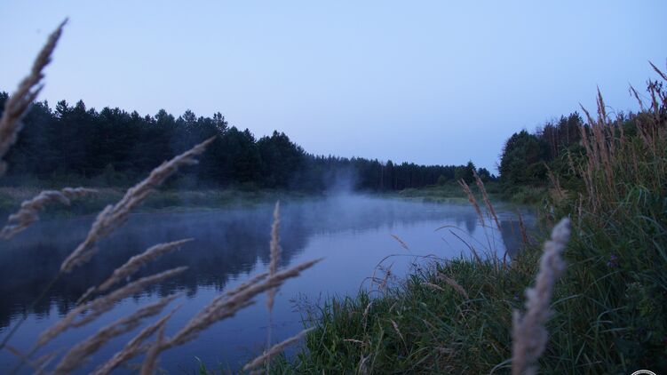 На одному з них фотограф зняв тиху стрічку річки, огорнуту легким річковим туманом, в обрамленні трав та лісових дерев.