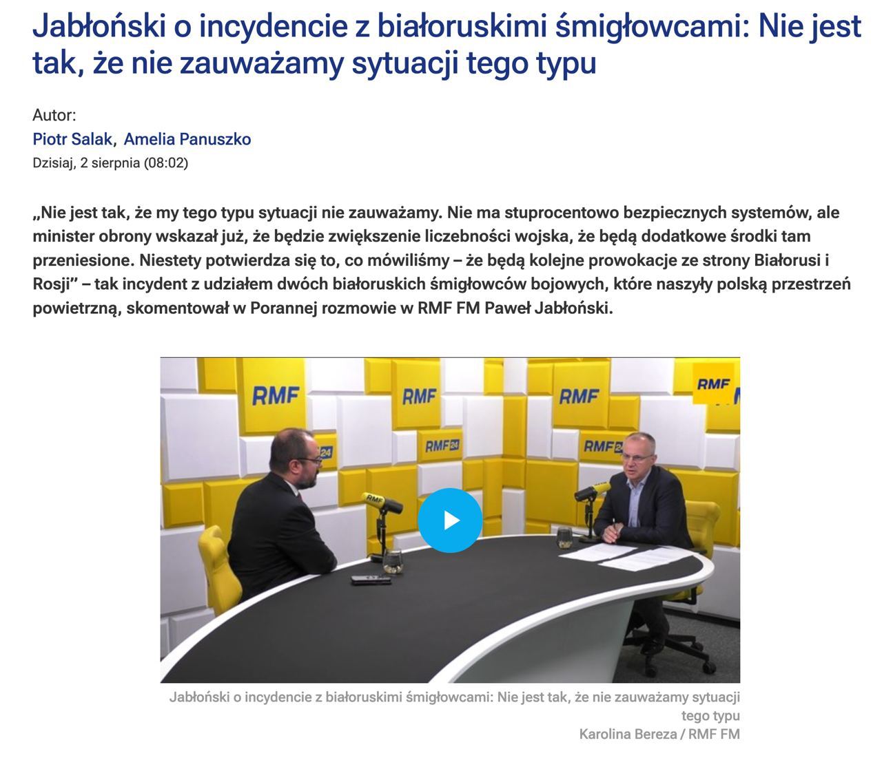 Про це заявив заступник голови польського МЗС Павло Яблонський в ефірі радіостанції RMF.