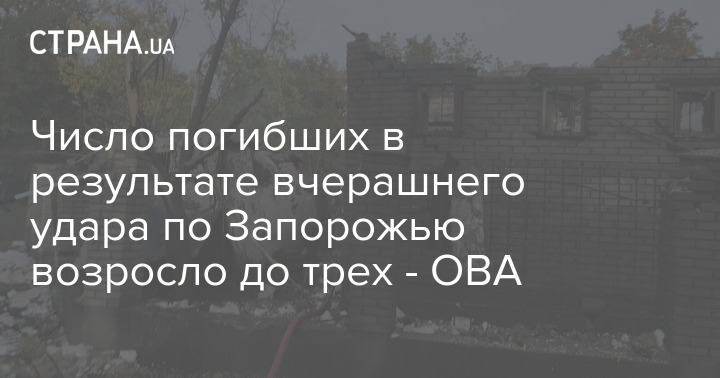 Число загиблих внаслідок вчорашнього удару по Запоріжжю зросло до трьох - ОВА