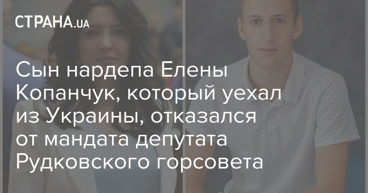 Син нардепа Олени Копанчук (Слуга народу) Дмитро, який виїхав із України, написав заяву про відмову від мандата депутата Рудківської міськради.