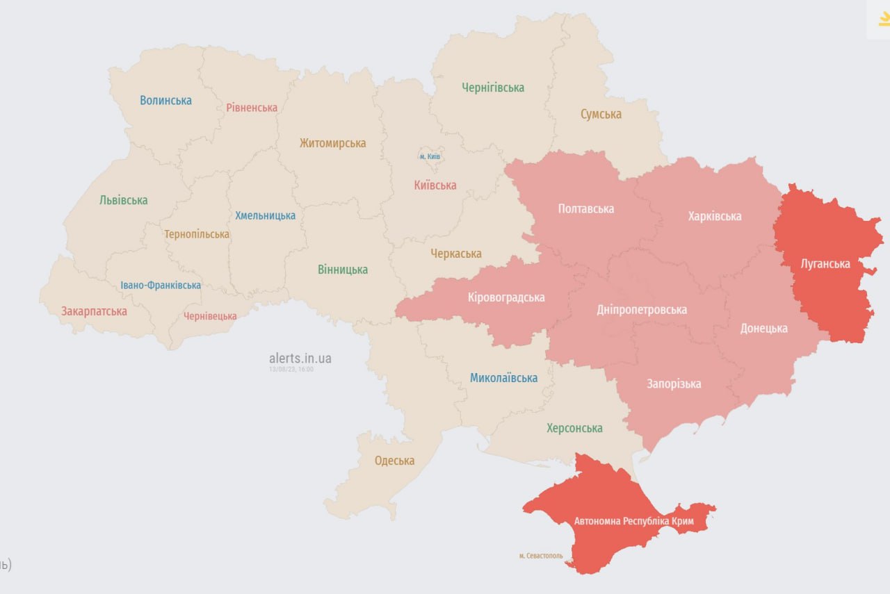 23:48 Повітряна тривога у половині областей України. Військові повідомляють про стратегічних бомбардувальників РФ в акваторії Азовського моря. Є загроза застосування крилатих ракет.